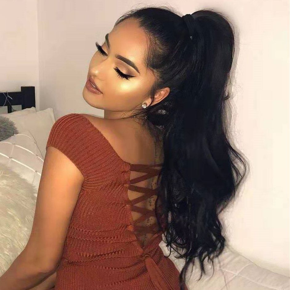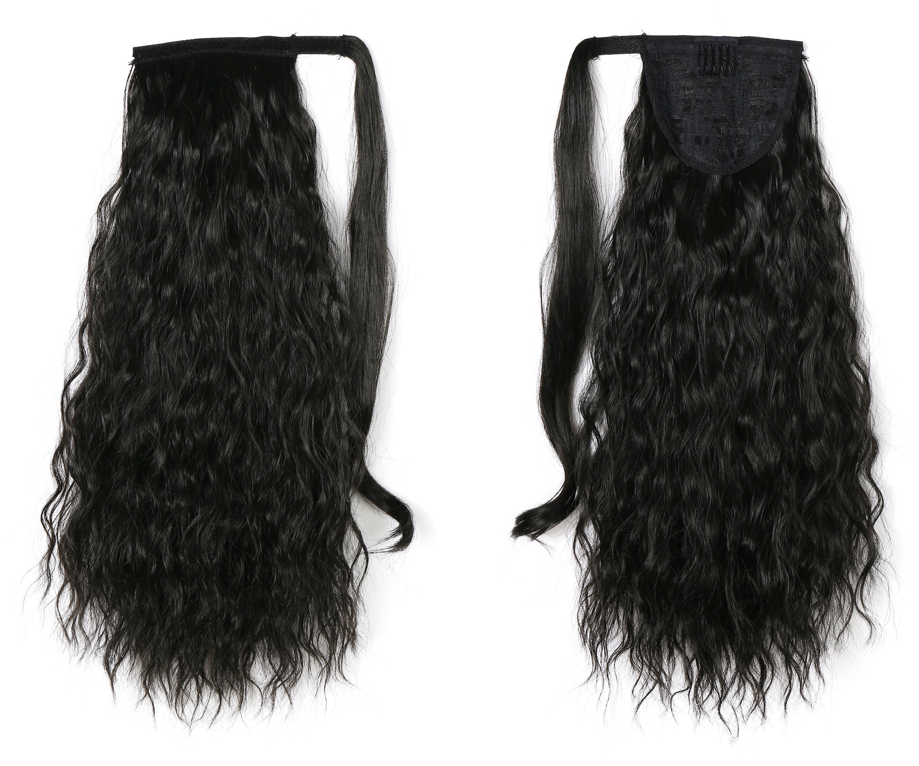 Vesunny natural black brazilian ponytail human hair extensions curly 14inch wrap around one piece pony tails remy hair with magic paste 80g/set. Human hair ponytail extension 100% real human hair pony tails wrap around corn wave ponytail hair pieces for women natural black brazilian hair ponytail with magic paste 22 inch 22 inch 3.4 out of 5 stars 37 This classic hair trick uses no bobby p. Wrap around ponytail human hair extensions #1b natural black. It's very pretty, with sexy, loose, shiny waves.
